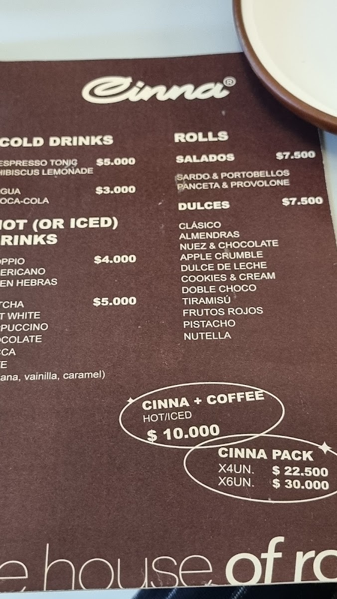 Welcome to Cinna Coffee&Roll, a delightful coffee shop nestled in the vibrant heart of Buenos Aires. With its cozy atmosphere, it’s the perfect spot for coffee lovers and sweet-toothed patrons alike. The menu features innovative combinations, like the Espresso Tonic, priced at just ARS 5,000, which promises a refreshing twist on your traditional espresso experience.